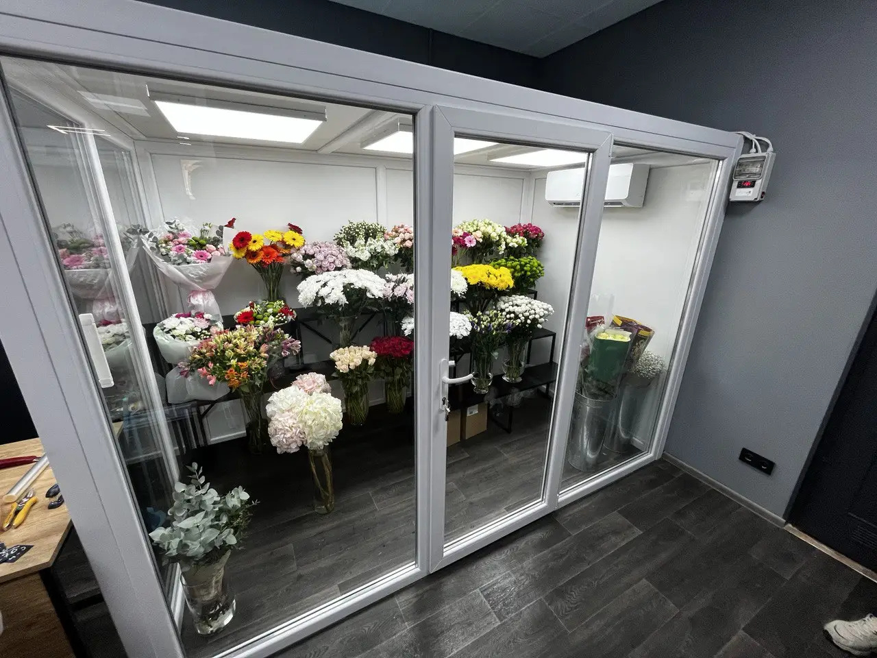 Особливості проекту:Всановлення квіткової вітрини з холодильним обладнанням під ключ. Простий монтаж. Кондиціонер для квітів, що не потребує висококваліфікованих монтажних організацій. Довжина трубок між блоками до 15 м.п. що є перевагою.